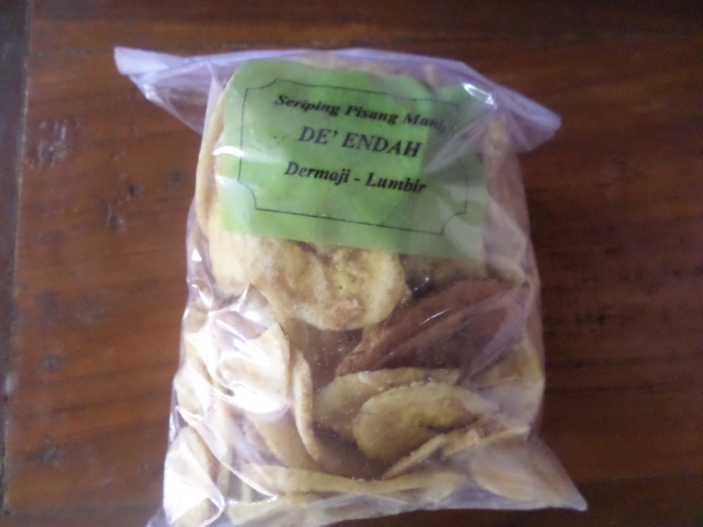 Seriping Pisang De Endah merupakan salah satu cemilan yang diproduksi oleh Bu Wartini. Nama Produk De Endah di ambil dari nama anaknya yang bernama Endah. Produksi Seriping De Endah sudah berjalan sekitar 20 tahun.