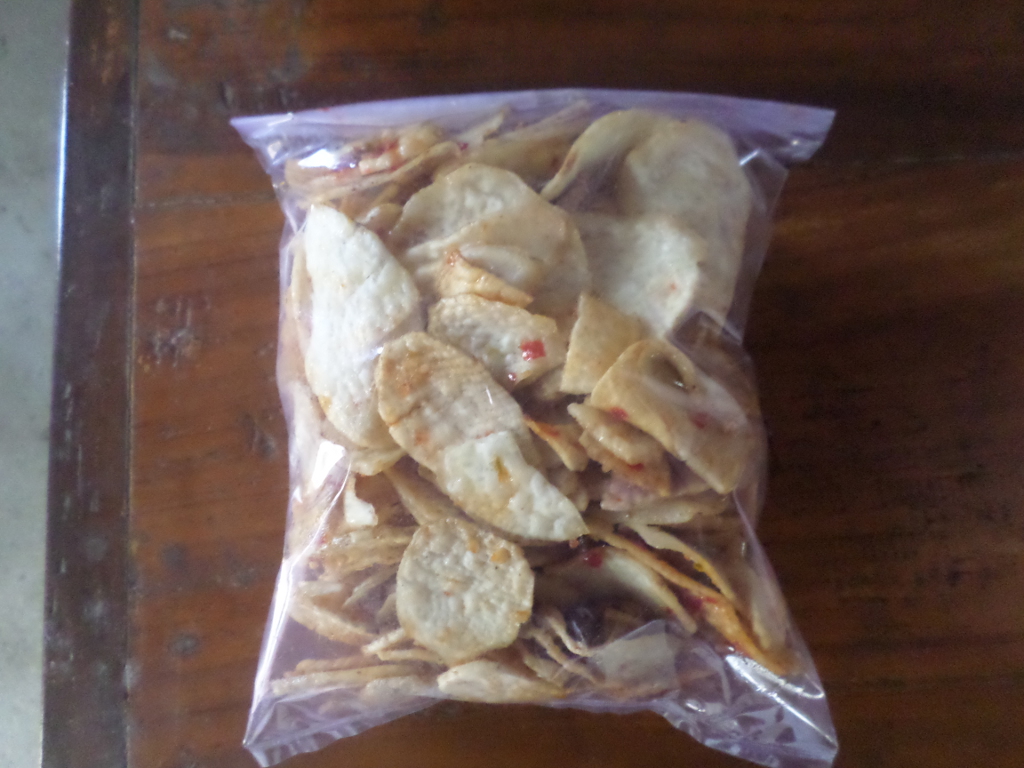 Varian Seriping De Endah yang satu ini tidak kalah dengan cemilan yang lain. Cemilan produksi Wartini menggunakan bumbu alami, yaitu cabai, gula, bawang merah, bawang putih, kemiri. Dan bahan dasar dari seriping Talas ini adalah Talas Pisang sehingga Kualitas Seriping Talas dapat bertahan sampai kurun waktu 1 bulan.