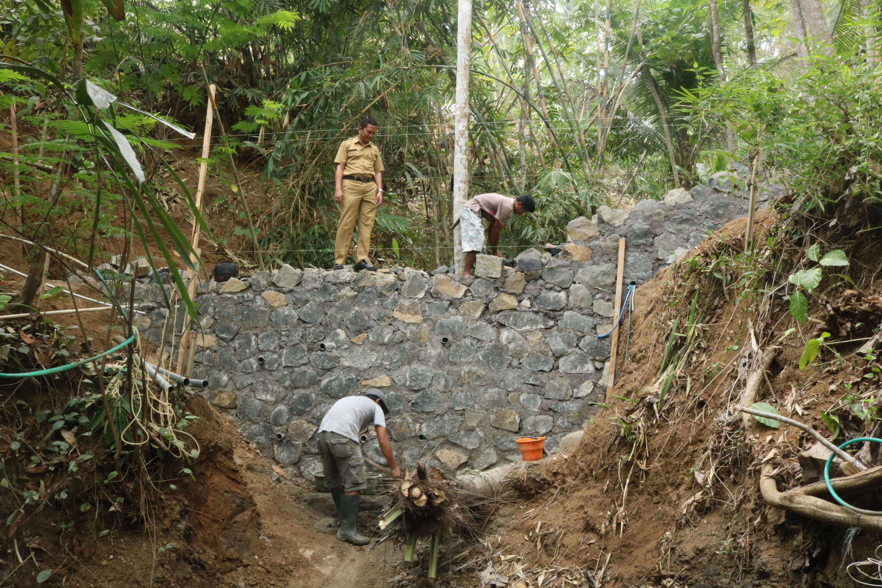 Untuk mencegah terjadinya pergerakan tanah yang lebih parah, Pemdes Dermaji pada tahun anggaran 2018 ini membangun sebuah talud di bawah SD Negeri 2 Dermaji.